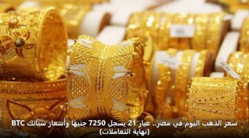 سعر الذهب اليوم في مصر.. عيار 21 يسجل 7250 جنيهًا وأسعار سبائك BTC (نهاية التعاملات)