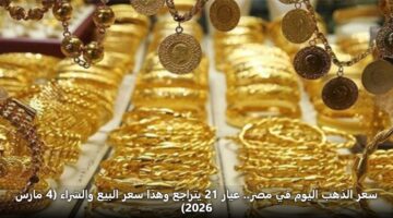 سعر الذهب اليوم في مصر.. عيار 21 يتراجع وهذا سعر البيع والشراء (4 مارس 2026)